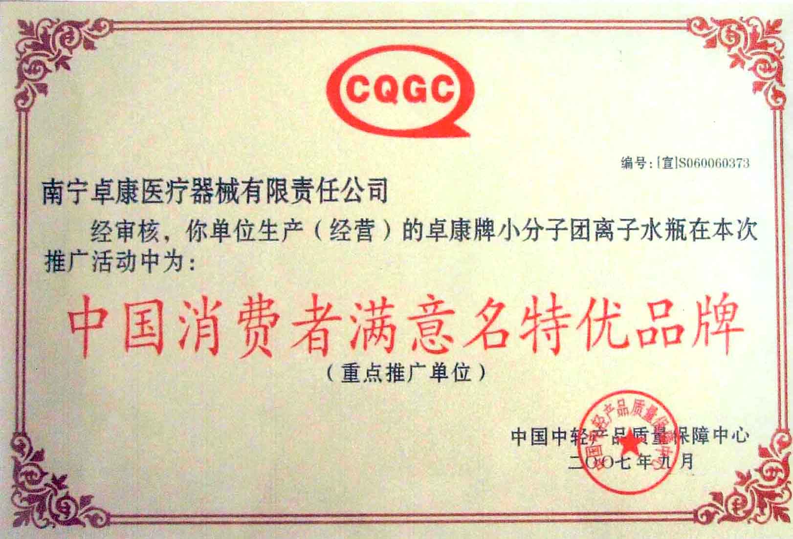 卓康牌離子水瓶榮獲中國企業(yè)名優(yōu)產(chǎn)品[點(diǎn)小圖見大圖]、中國著名品牌稱號(hào)[點(diǎn)小圖可見大圖]